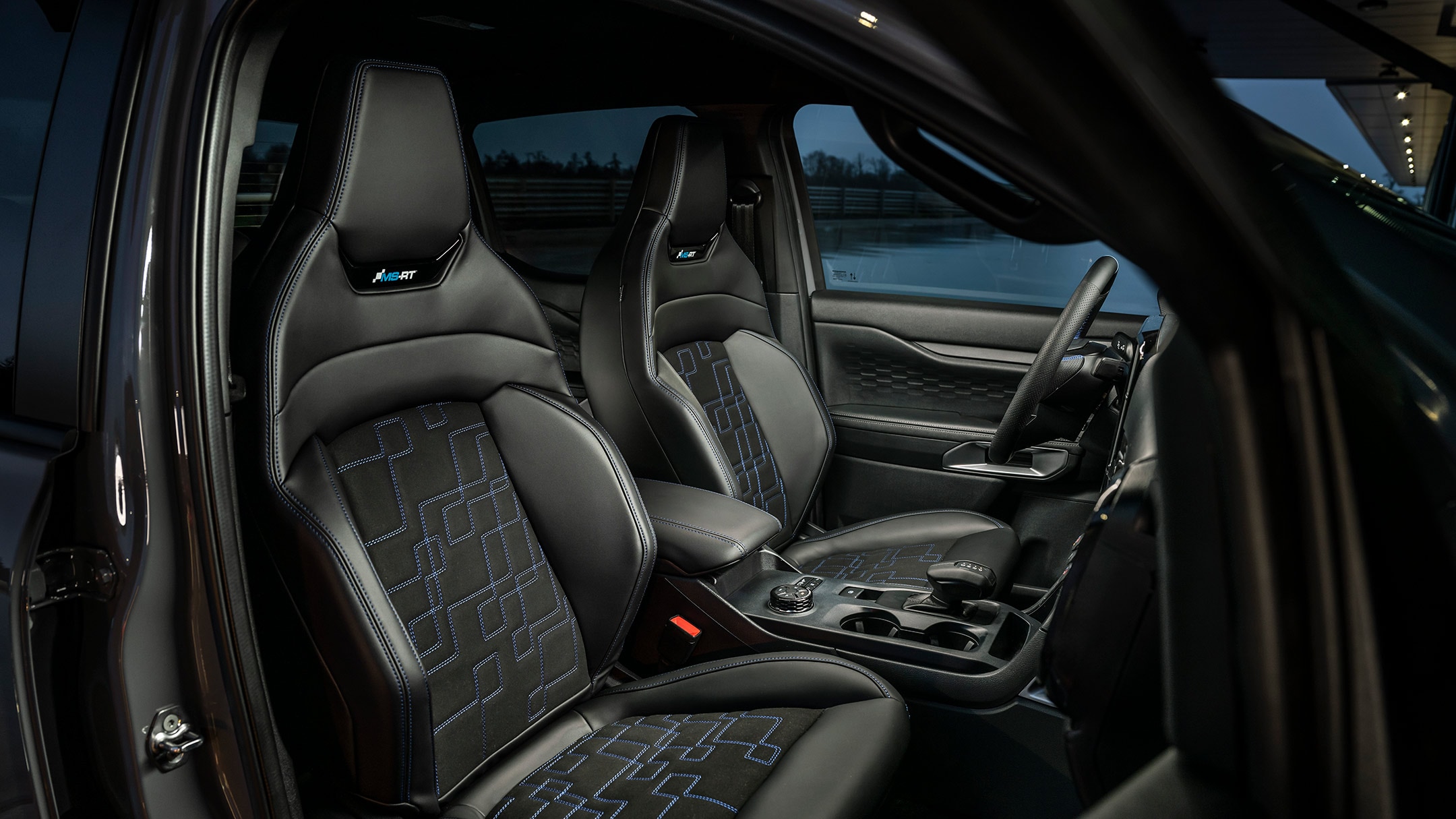 Les sièges MS-RT Sport sont dotés d'un rembourrage unique et sont garnis de cuir Eco-Leather® et de daim synthétiques haut de gamme. Ils arborent le logo MS-RT juste sous l'appuie-tête et des surpiqûres bleues contrastées subtiles. Minutieusement fabriqué à la main. Finitions sur mesure. Ces sièges offrent style et confort.
